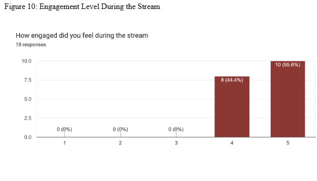 Engagement Rating: Majority rated engagement 4 or 5.
