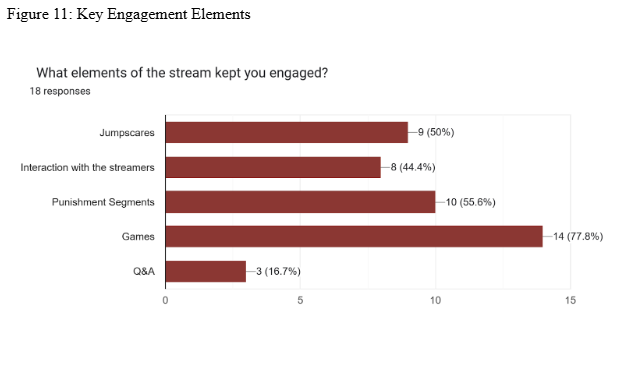 Engagement was highest during jumpscares, punishment segments, and live Q&A.